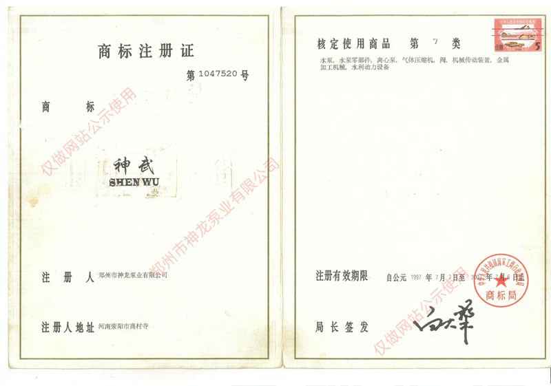 商标注册证书